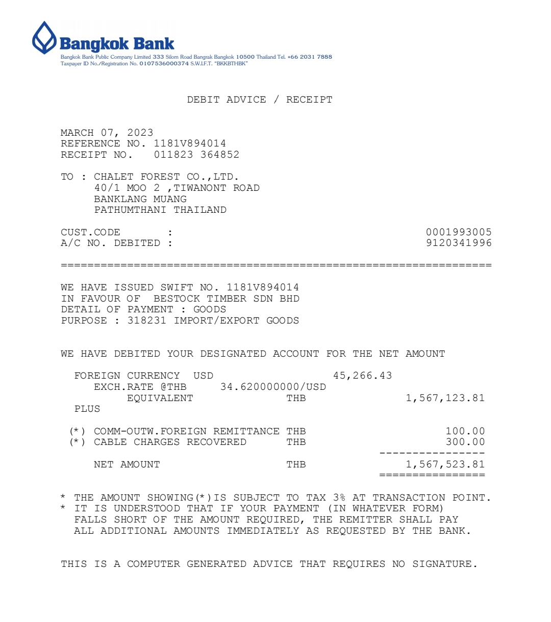 โอนไป bbl จ่ายไม้อัดมาเลย์ BESTOCK