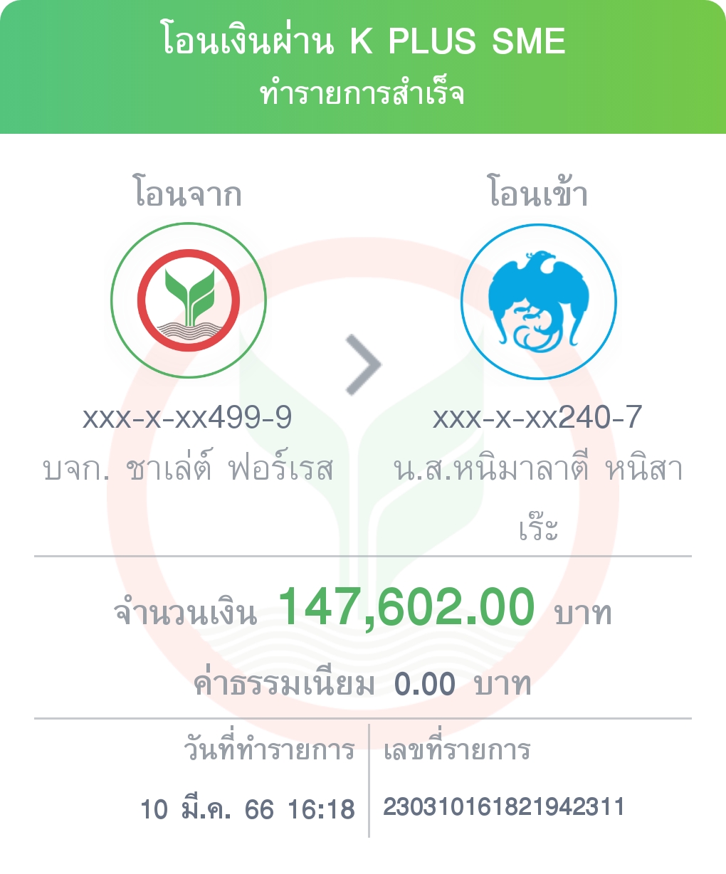 จ่ายค่าไม้ NSR parawood