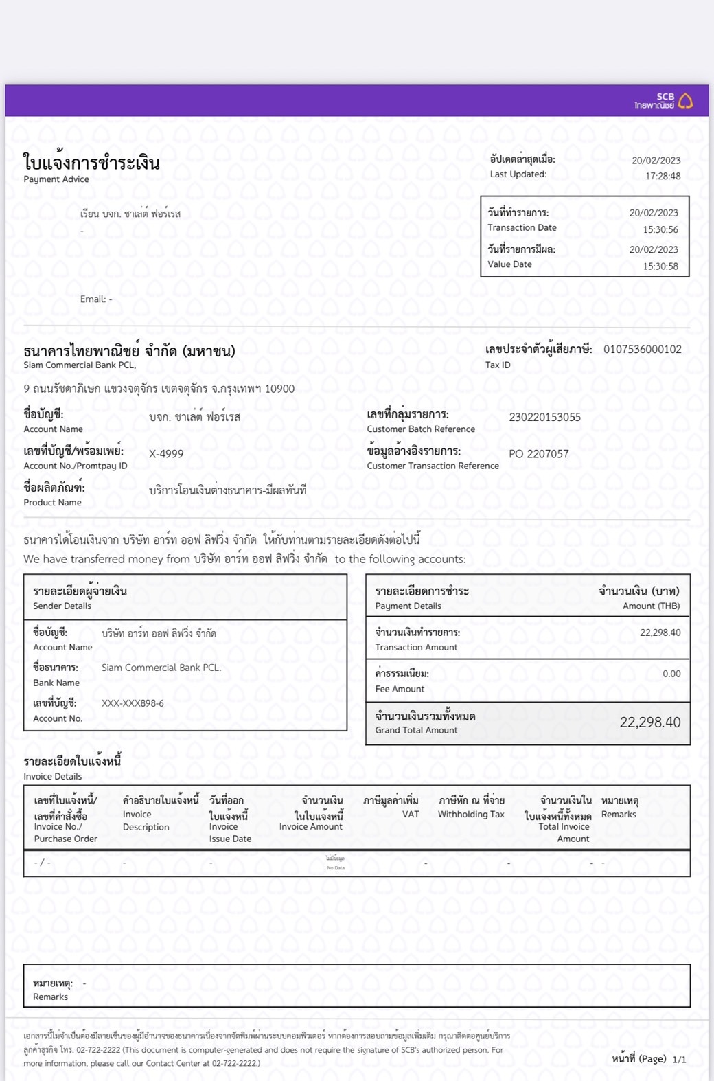 รับโอน บริษัท อาร์ท ออฟ ลิฟวิ่ง จำกัด สาขาที่ 00001 ตัดชำระ INVPD2302-0025