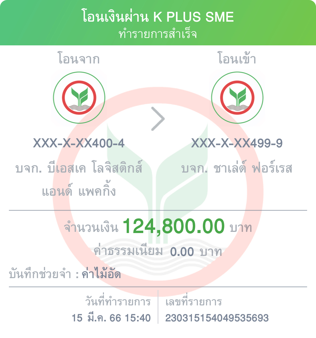 รับโอน บริษัท บีเอสเค โลจิสติกส์ แอนด์ แพคกิ้ง จำกัด ตัดชำระ INVPD2302-0138