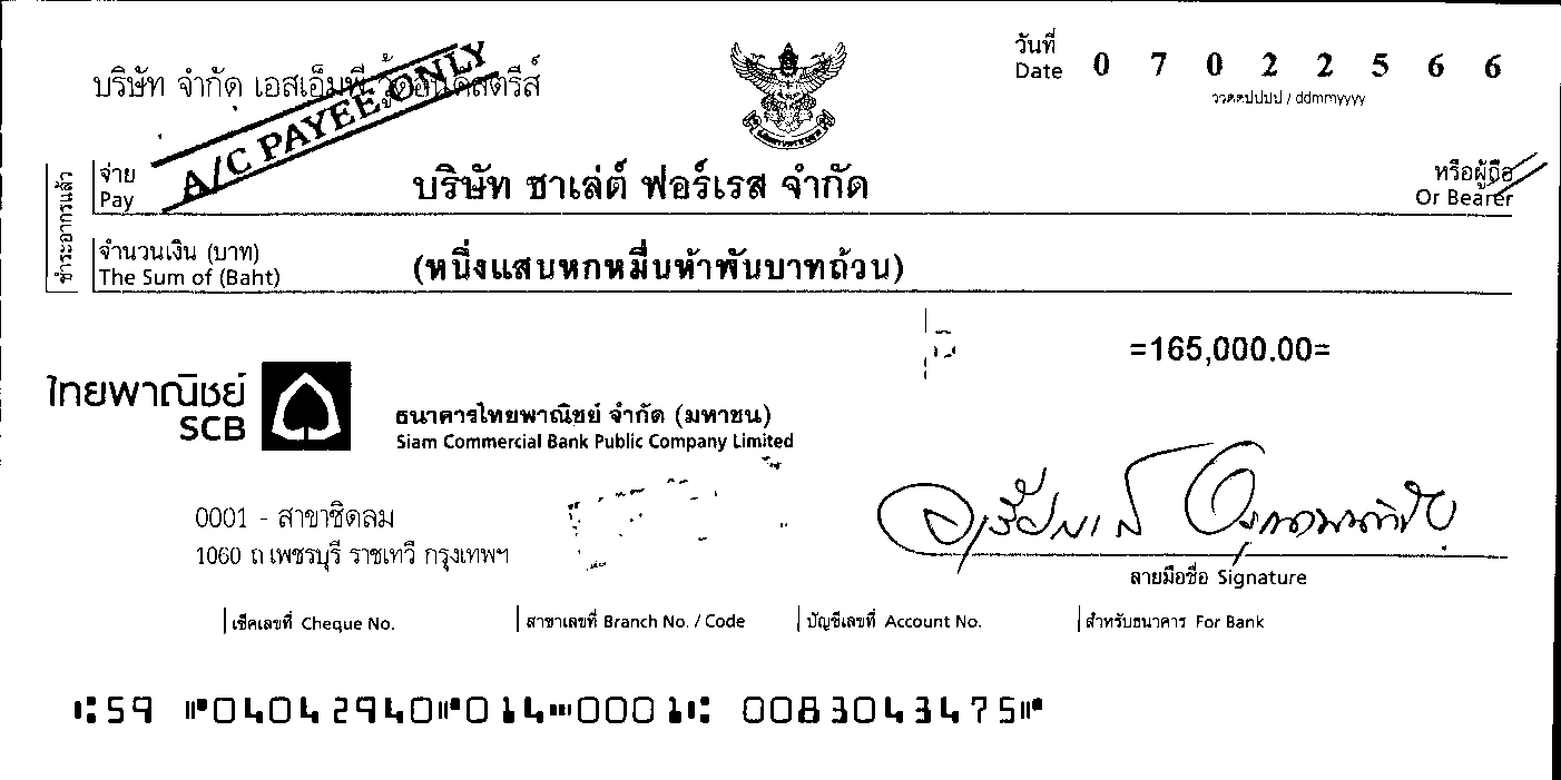รับเช็คฝากธนาคาร บริษัท เอสเอ็ [...]