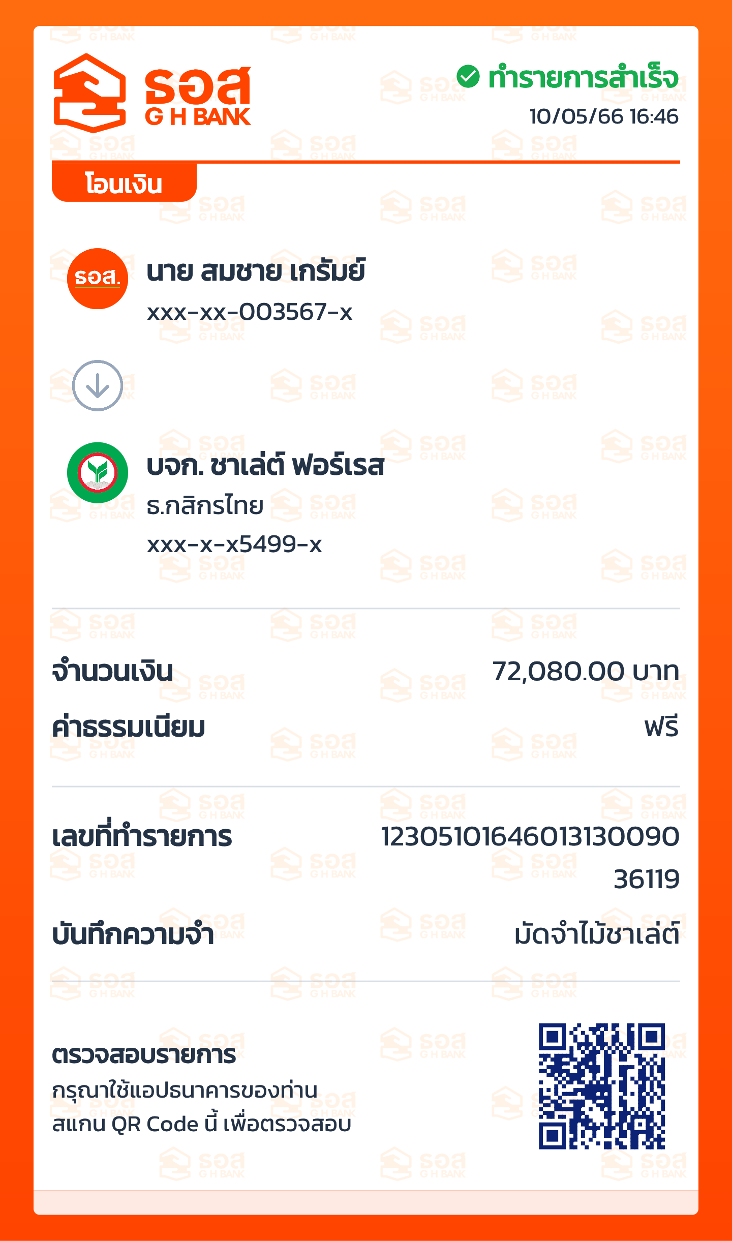 รับโอนจากลูกค้า คุณสมชาย เกรัม [...]