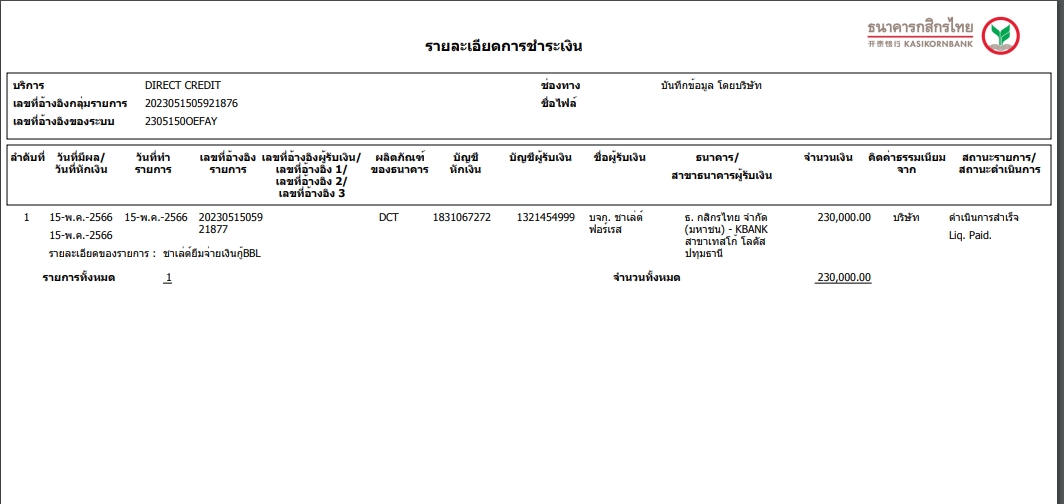 รับชำระจาก บริษัท ลอจิสติคส์ โ [...]