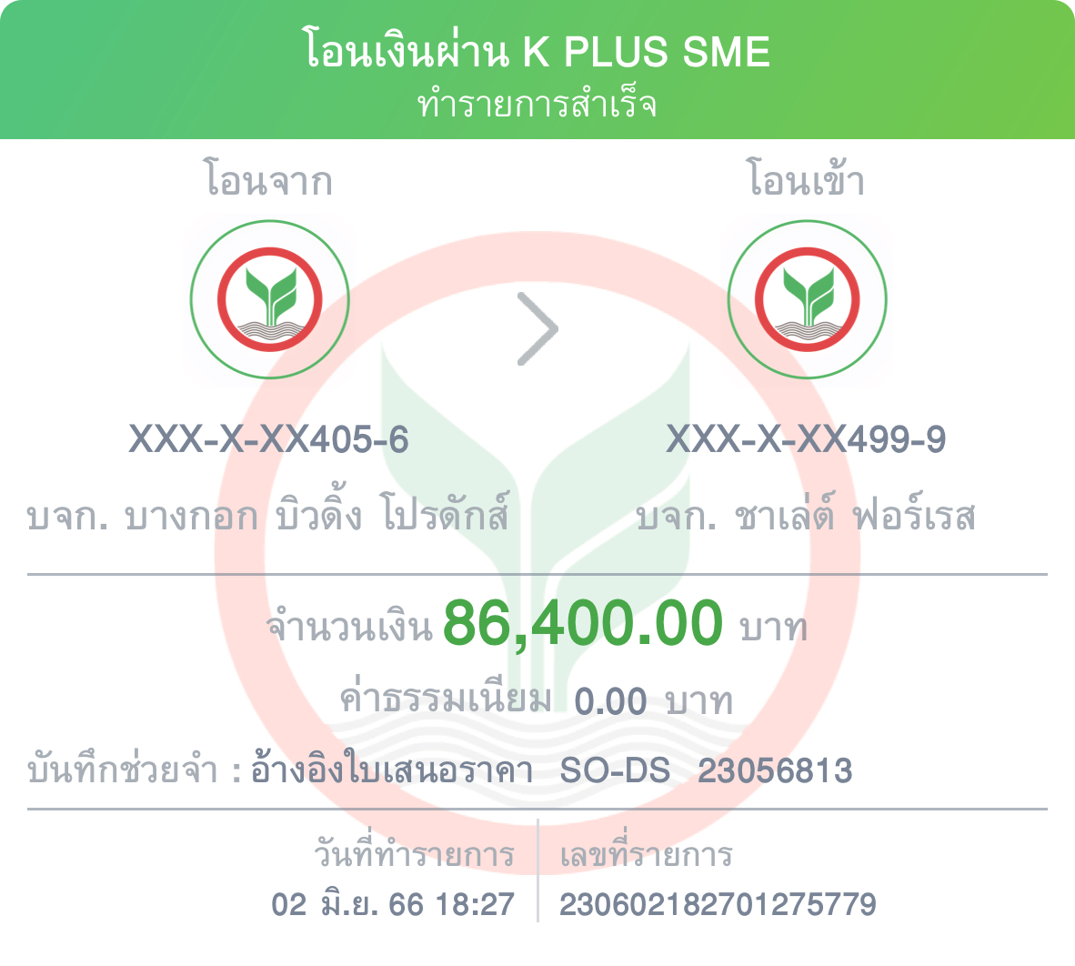 รับโอนจาก บริษัท บางกอก บิวดิ้ง โปรดักส์ จำกัด ตัดชำระ INVPD2306-0009