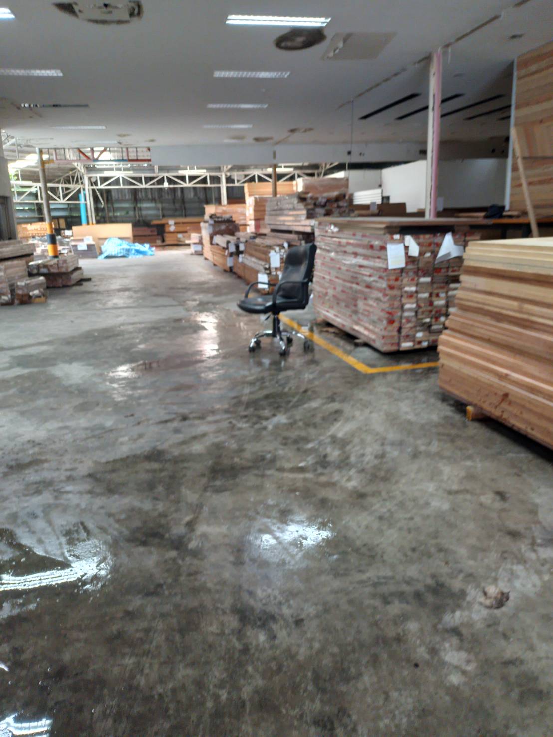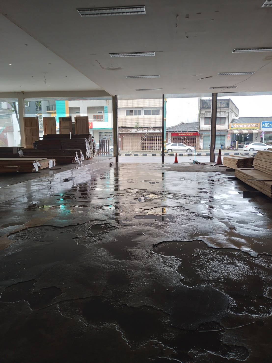 - กวาดน้ำที่รั่วจากหลังคาทั่วพื้นร้าน