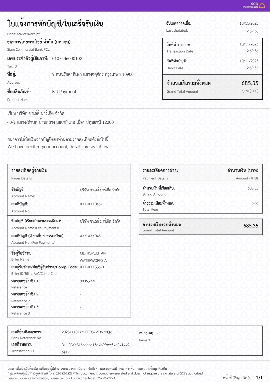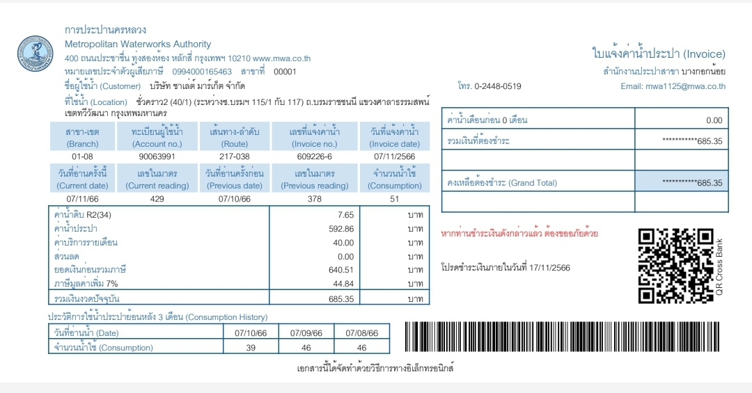 ค่าน้ำประปา