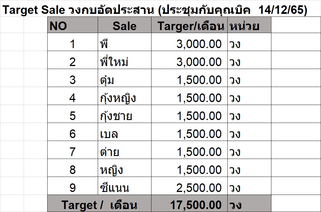 จากที่ประชุมคุณบิค 14/16/65 ได้มีการตั้งเป้าการขายวงกบอัดสานกับเซลล์ ดังนี้