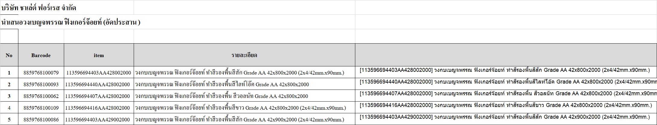 item วงกบเบญจพรรณ ฟิงเกอร์จ๊อยส์ สามารถหาสินค้าจาก บาร์โค๊ด 885 ได้คะ