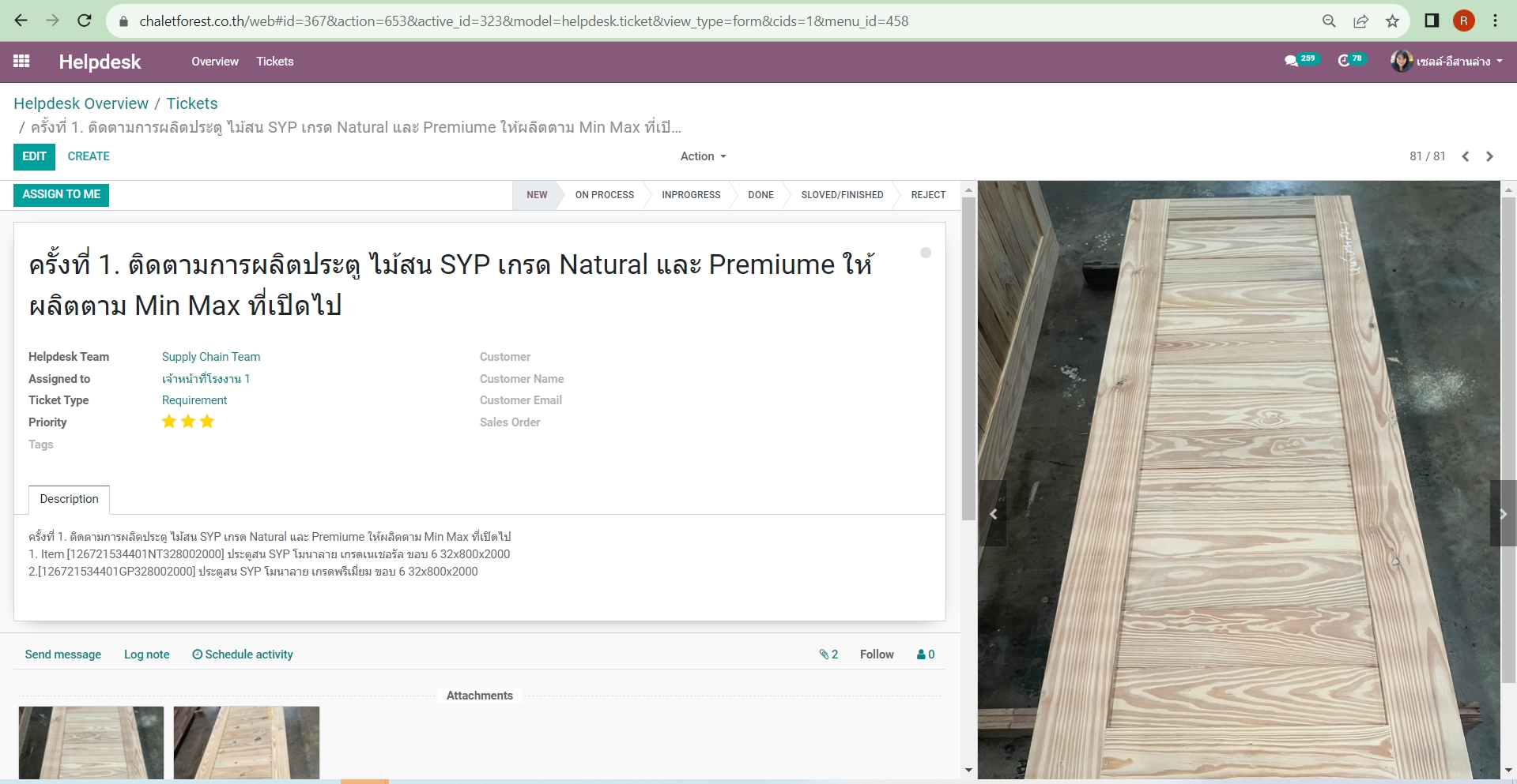 @ผู้จัดการโรงงาน 1 แป้ว รบกวนลงแผนผลิต ประตูไม้สนให้ด้วยคะ