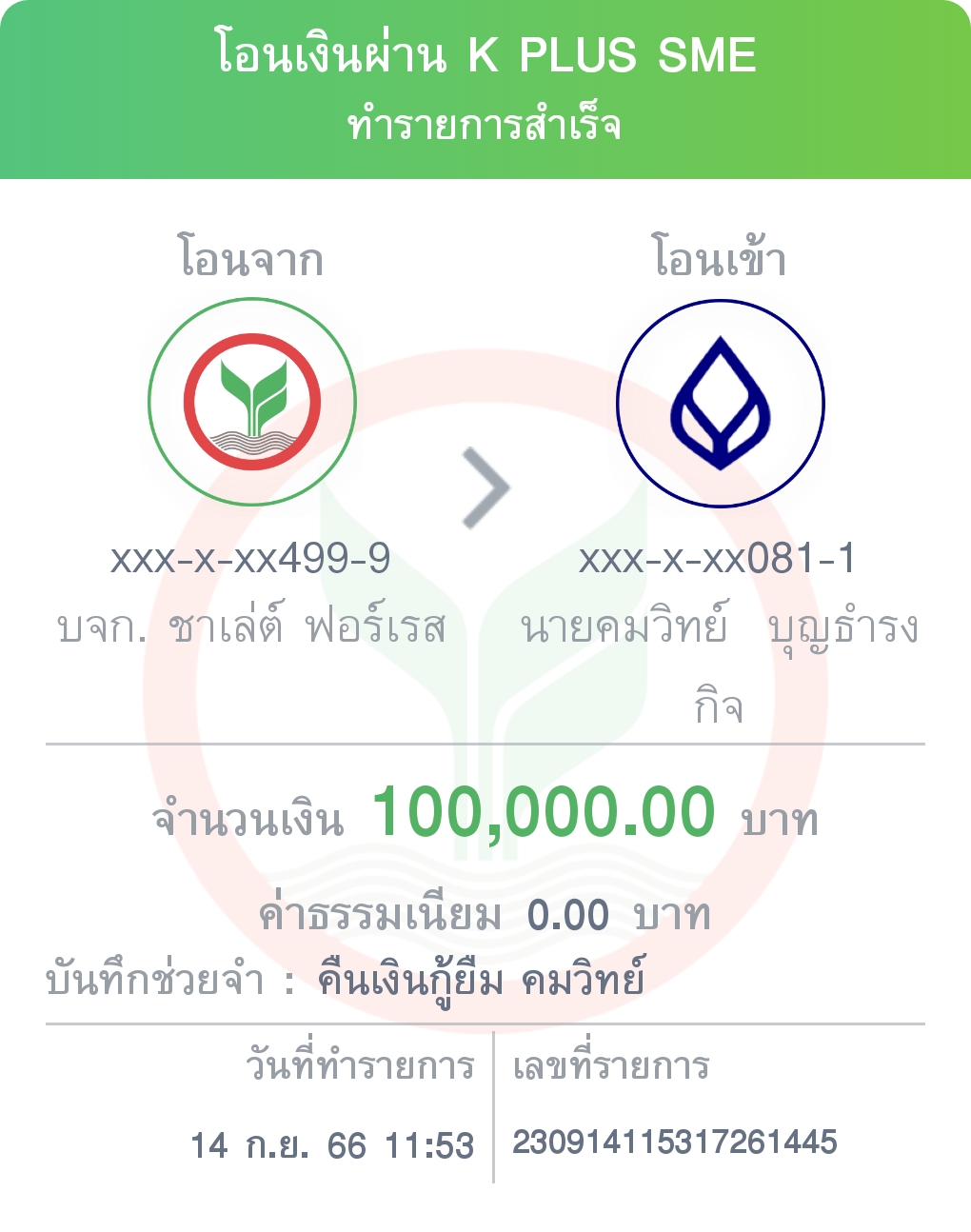 แล้ว คืนกู้ยืมมา 500000(400000+100000)