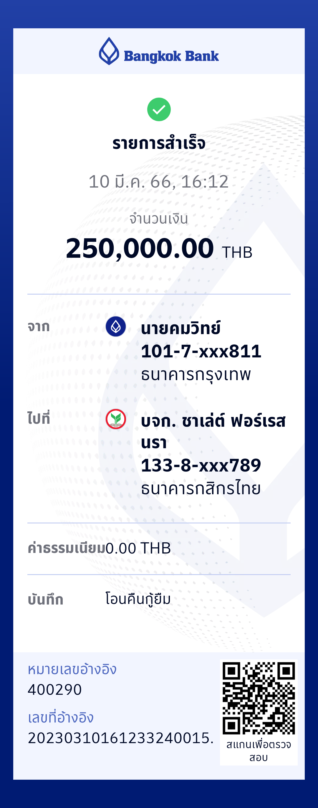 คมวิทย์คืนเงินกู้ยืม