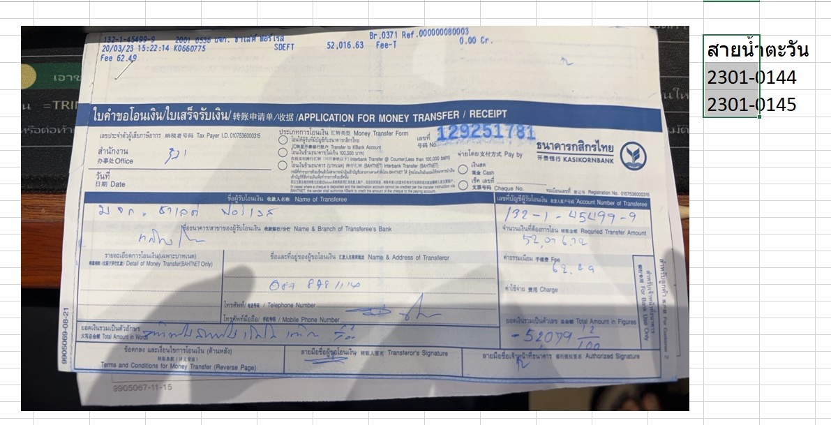 รับโอน บริษัท สายน้ำตะวัน จำกัด สำนักงานใหญ่ ตัดชำระ INVPD2301-0145,INVPD2301-0144