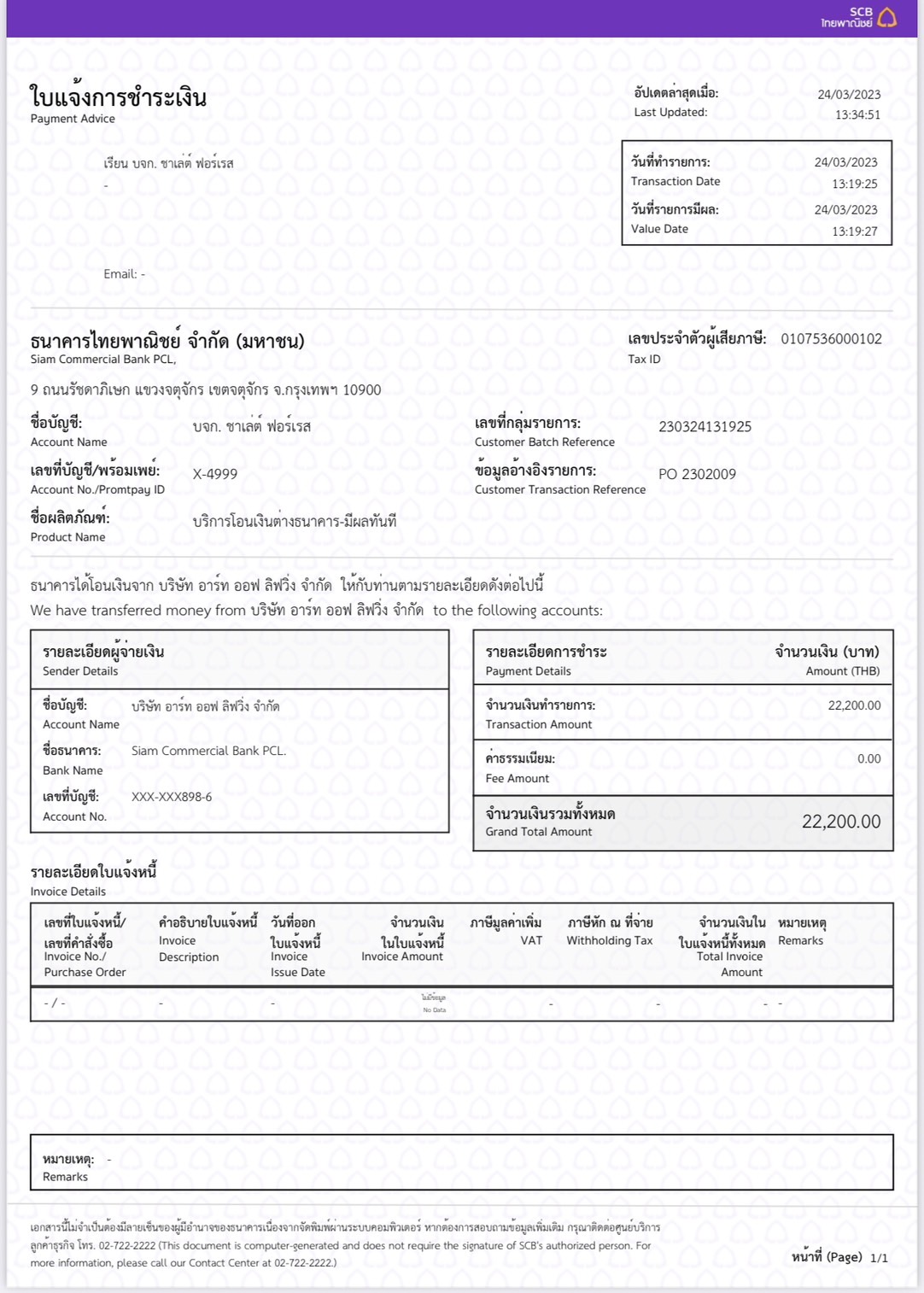 รับโอน บริษัท อาร์ท ออฟ ลิฟวิ่ง จำกัด สาขาที่ 00001 ตัดชำระ INVPD2302-0151