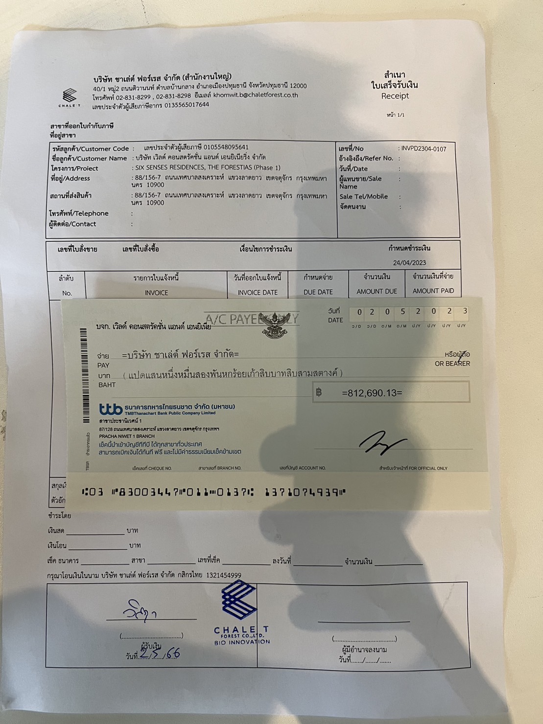 รับเช็ค บริษัท เวิลด์ คอนสตรัคชั่น แอนด์ เอนยิเนียริ่ง จำกัด ตัดชำระ INVPD2304-0107