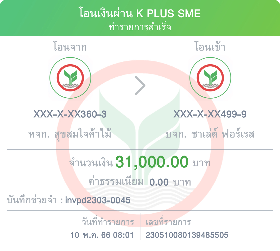 รับโอนจาก ห้างหุ้นส่วนจำกัด สุขสมใจค้าไม้ สำนักงานใหญ่ ตัดชำระ INVPD2303-0045