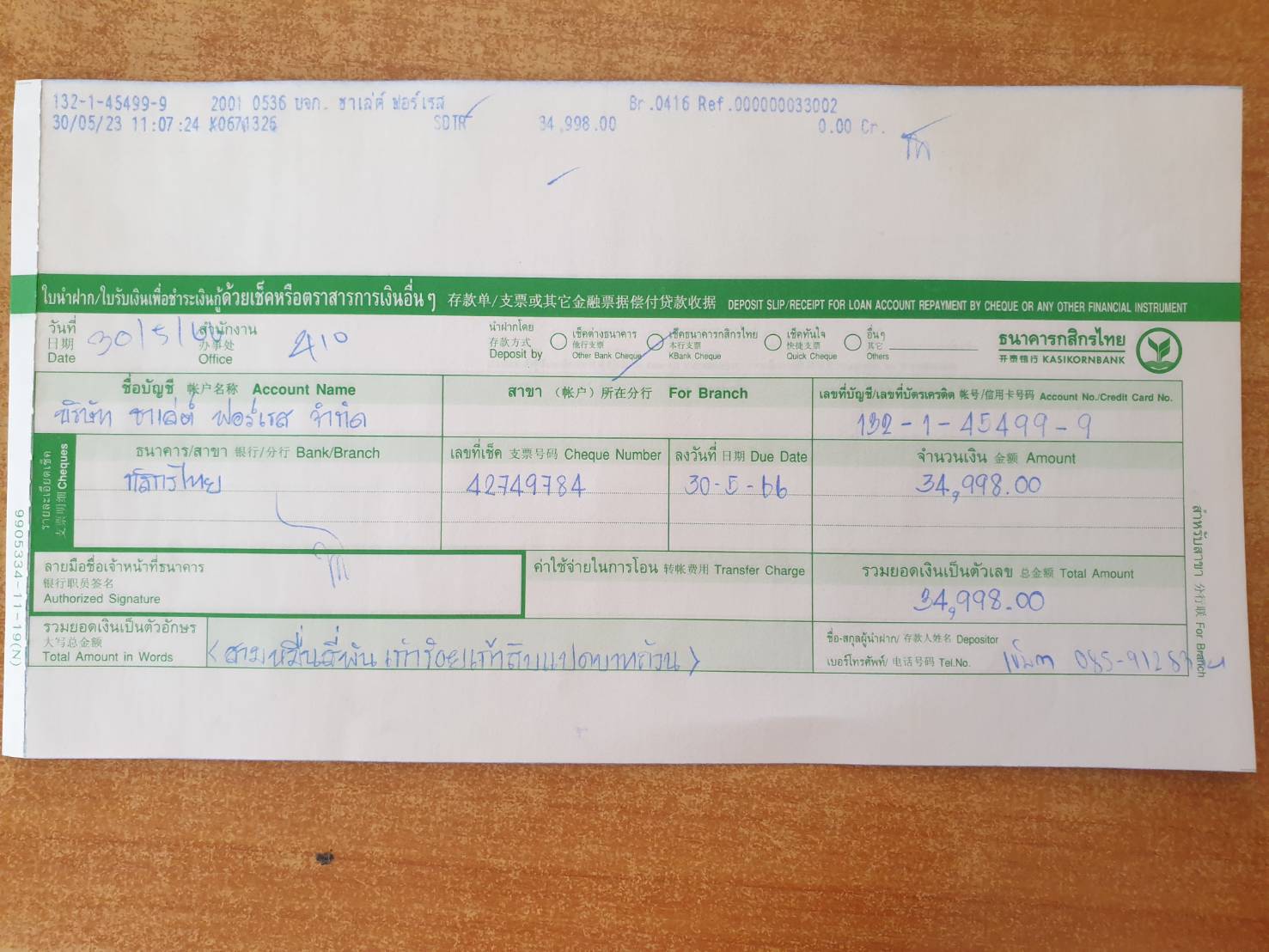 รับชำระจาก บริษัท คลองห้าค้าวั [...]