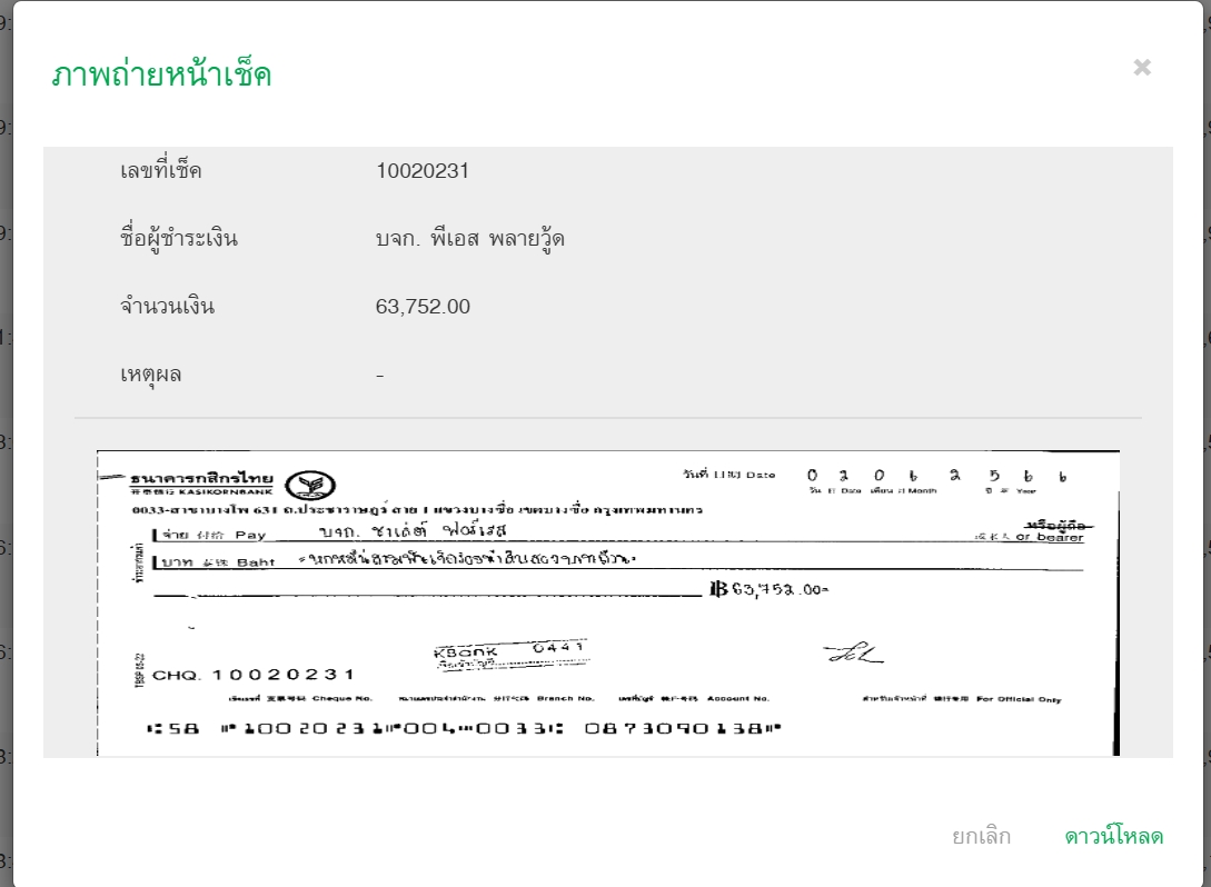 รับเช็ค ฝากเช็คจาก บริษัท พีเอ [...]