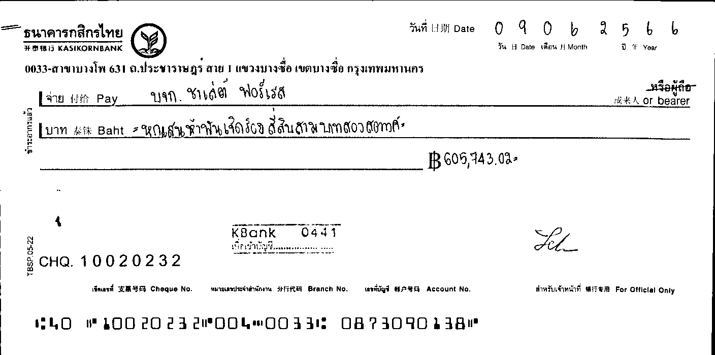 รับเช็ค ฝากเช็ค บริษัท พีเอส พลายวู้ด จำกัด สำนักงานใหญ่ ตัดชำระ INVPD2303-0131