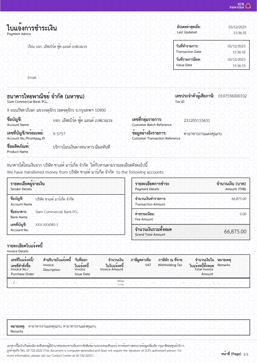 Lovebird ค่าอาหารงานแต่งคุณกบ