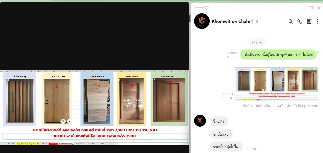 ขออนุญาตแจ้ง ราคาประตู คอลเลคชั่น"Timber Harmony" ทำสีโอ๊ค ดังนี้คะ พอดีได้คุยกับคุณบิคมาค่ะ