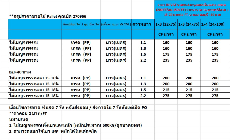 To all สรุปราคาขายไม้พาเลทจากที่ประชุม 270966 คะ